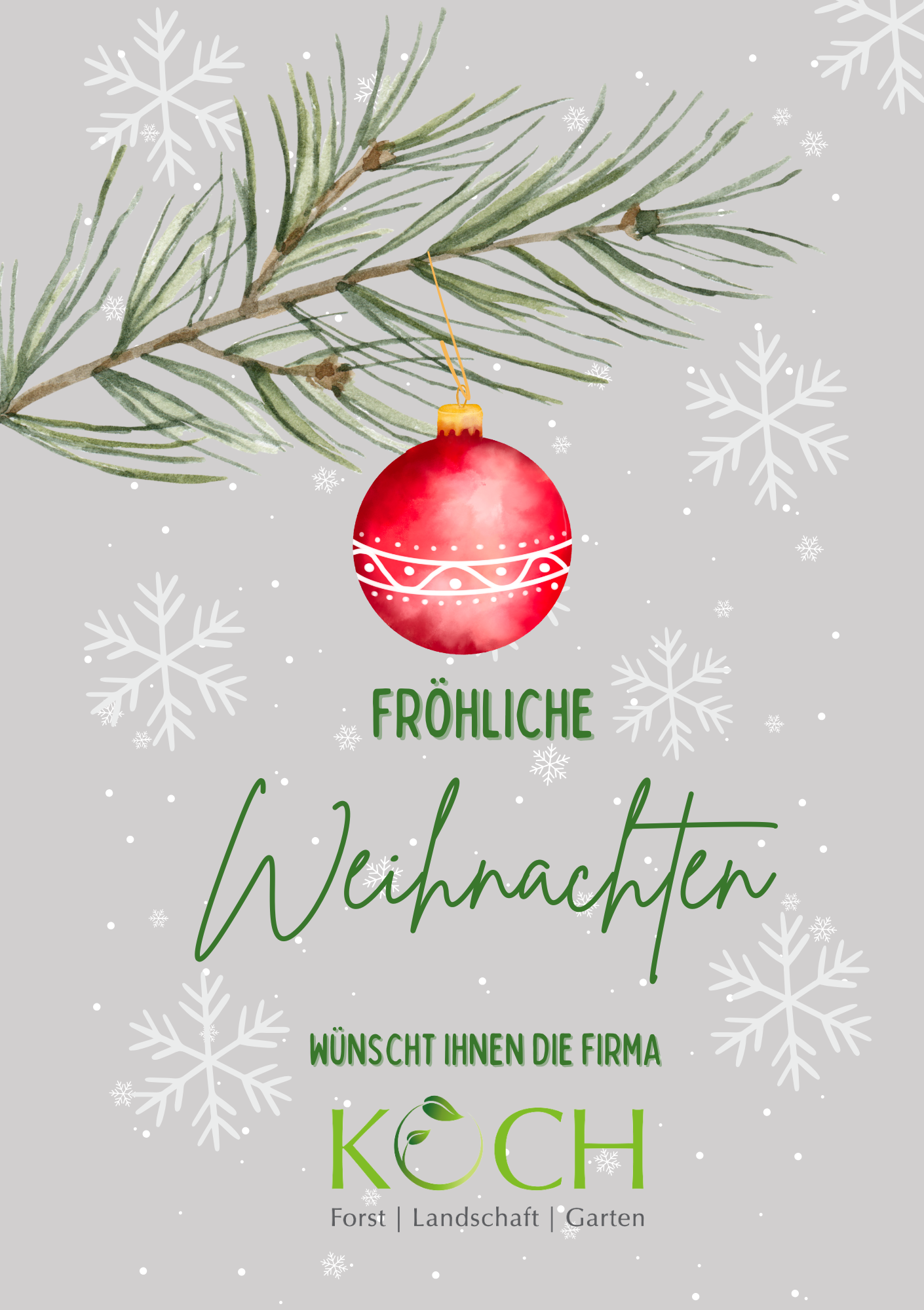 Die Firma Koch – Forst | Landschaft | Garten wünscht Ihnen und Ihrer Familie auch in diesem Jahr schöne Weihnachten und einen guten Start ins neue Jahr 2026.